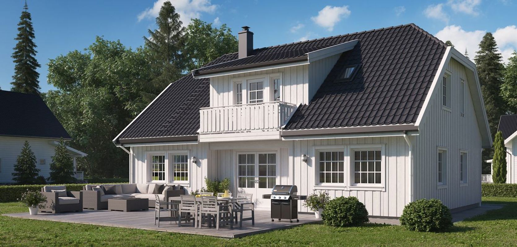 Med sine 150 kvadratmeter har huset en svært praktisk planløsning, med fire soverom, to bad og en romslig hall. Det er rikelig med plass til en stor familie. Gjennom årene har huset blitt forbedret basert på verdifulle råd og tilbakemeldinger fra våre kunder.